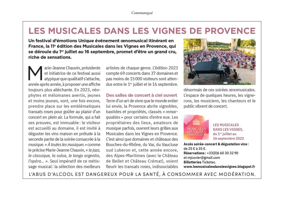 Les Musicales dans les Vignes racontées par la presse